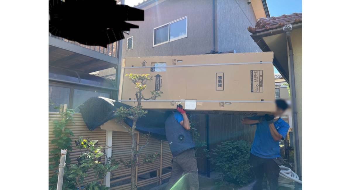 肩から上に重量物を上げて、どこにもぶつけないように慎重に運び出し・運び入れは、これまでの様々な工事でも一番の大変さかと思います…。